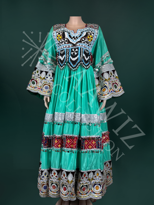 Sitara – Emerald Handcrafted Afghan Dress (Three Piece)