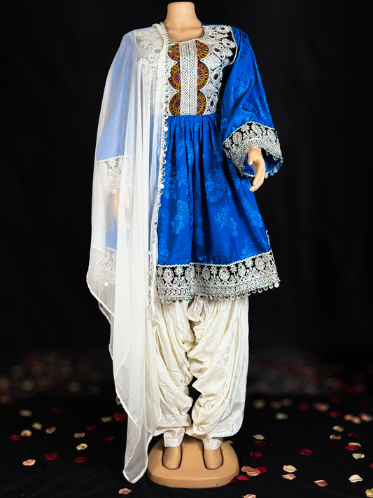 Afsana Blue & White Handcrafted Traditional Outfit (Three Piece)
